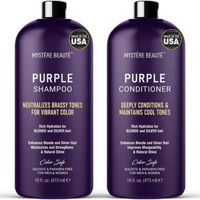 - Nossa máscara de xampu roxa e shampoo e condicionador roxos para cabelos loiros oferecem condicionamento profundo para uma experiência com qualidade de salão em casa. Projetado especialmente para mulheres com cabelos grisalhos, nosso conjunto de shampoo e condicionador roxo para cabelos loiros tonifica efetivamente os tons de bronze e realça os fios prateados. Com o melhor shampoo roxo para cabelos grisalhos e um condicionador complementar contendo água purificada, óleo de coco, suco de folha de aloe, colágeno hidrolisado e vitaminas B5 e E, este shampoo e condicionador roxo para cabelos grisalhos é ideal para loiras e pessoas com cabelos mechados.