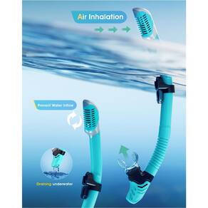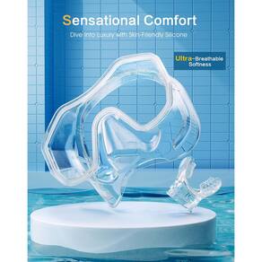 equipamento de mergulho para adultos - ?Design antirespingos de cano seco?O conjunto de snorkel adulto instala uma válvula de inalação unidirecional e tem uma bola flutuante móvel na parte superior. Quando o tubo estiver debaixo d'água, a entrada do tubo será fechada pela bola flutuante, esteja você nadando ou mergulhando, você pode lidar com isso facilmente. - ?Lentes antiembaçamento fornecem visão clara?A máscara de mergulho e os espelhos de snorkel são equipados com filme antiembaçamento para evitar embaçamento dentro da lente quando o nariz expira. Agora você pode desfrutar de todas as paisagens subaquáticas claramente. - ?Material de grau alimentício é seguro e não tóxico?O conjunto de mergulho e seu bocal são feitos de silicone de alta qualidade de grau alimentício, não tóxico e inodoro, unissex e seguro para crianças. - ?Proteção ocular segura?A superfície espelhada da máscara de mergulho é feita de vidro temperado, que é forte e antiembaçante e pode proteger seus olhos com segurança. É a melhor escolha para nadar. - ?Confortável de usar e impermeável?A máscara de mergulho é projetada com tecnologia de molde de vedação facial de silicone canelado macio. Adapta-se ao rosto da maioria das pessoas, a alça ajustável permite um ajuste perfeito ao rosto quando usada. Vedação à prova d'água.