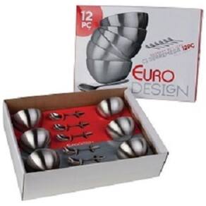 Conjunto para sobremesas Euro Home. Composto por 06 tigelas e 06 colheres de sobremesa, feito em aço inox ajuda a conservar melhor a temperatura. Sirva suas sobremesas com estilo e classe! Conjunto para sobremesas da Euro Home, fica mais prático e bonito servir doces, sorvetes, saladas de frutas e muito mais.