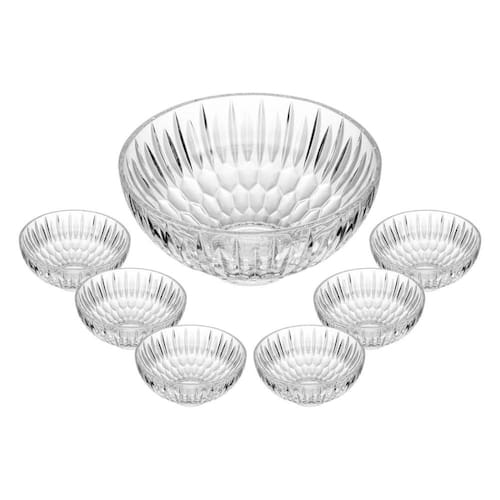 Este conjunto de 7 peças é indispensável para quem ama receber com requinte. Ele inclui um bowl principal grande e seis bowls menores individuais, todos confeccionados em vidro de alta qualidade.