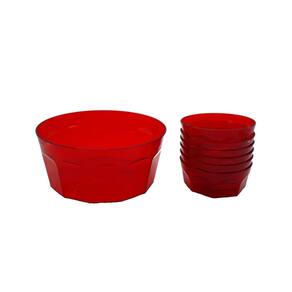 1 vasilha oitavada g, com 22 cm de diâmetro por 10 cm de altura. 6 vasilha oitvadas p, com 11 cm de diâmetro por 5 cm de altura. Tipo de utensílio: conjunto de sobremesa dehaus material: polipropileno