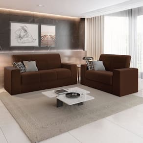 Madeira de eucalipto, espuma D18 (assento), espuma D16 (encosto), tecido veludo, pés em PVC, percintas elásticasVendido e entregue por Esplanada Móveis