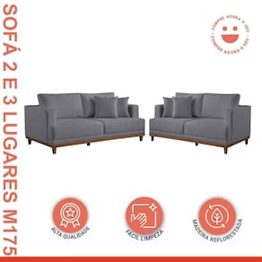 Apresentamos o conjunto de sofá M175, composto por um sofá de 2 lugares e outro de 3 lugares, uma combinação perfeita de conforto e estilo para sua sala de estar. Com seu design elegante e contemporâneo, estes sofás se destacam pela sua durabilidade e funcionalidade. Seus assentos e almofadas macias proporcionam o máximo de conforto, enquanto sua estrutura robusta garante estabilidade. O conjunto M175 é ideal para famílias e espaços de entretenimento, oferecendo um ambiente acolhedor e convidativo para momentos inesquecíveis com amigos e familiares. Eleve o nível de conforto e estilo em sua casa com o conjunto de sofá M175. Acompanha Almofadas extras: 04 Almofada do assento: Fixa Almofada do encosto: Removível Altura do assento até o chão: 47 Altura do Encosto: 32 Altura dos Pés: 10 Ambiente Principal: Sala de Estar Cor: Cinza Escuro Cor do Produto: Cinza Escuro Densidade do Assento: D-28 Densidade do Encosto: D-18 Enchimento do Assento: Espuma Enchimento do Encosto: Fibra Siliconada Estilo de Braço: Braços Quadrados Firmeza do Assento: Firme Informações Complementares: * Encosto fixo 100% fibras de silicone Itens Inclusos: 1 conjunto com 2 sofás. Largura do Sofá Maior: 190 Material dos Pés: Madeira Necessita Montagem: Não Origem do Produto: Nacional Peso: 110 Pet Friendly: Não Possui Percintas Elásticas: Sim Possui Pés: 10 Possui Rodízio: Não Quantidade de Itens: 2 Recomendações de Uso, Manutenção e Limpeza: Não expor diretamente à luz do sol e à umidade; Resistente à Chuva: Não Revestimento do Braço: Veludo Suporta Até (kg): 150 Tecido Predominante: Linho Tipo de Encosto: Fixo Tipo de Mola: Molas Bonnel Marca: Estofados Martins