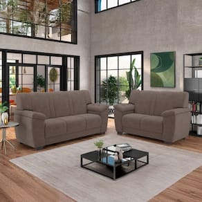 O Conjunto de Sofás Turim 2 e 3 Lugares é a escolha ideal para quem busca conforto, estilo e funcionalidade. Com design sofisticado que se adapta a qualquer ambiente, é fabricado com materiais de alta qualidade e revestido em veludo de toque macio, proporcionando uma experiência aconchegante. Conta com pés resistentes em PVC, suporta até 120 kg por assento e possui encosto removível, o que facilita o . Perfeito para momentos de relaxamento ou para receber visitas com charme e conforto.