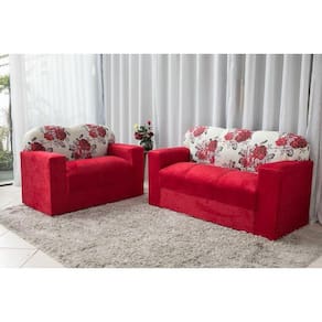 Jogo de Sofá de 2 e 3 Lugares Vermelho Estampado