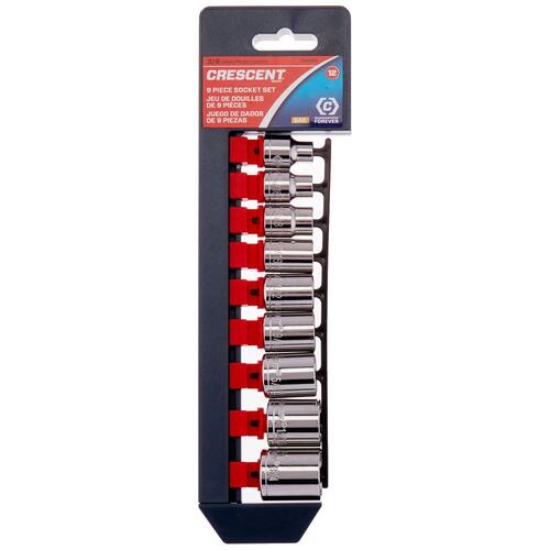 Crescent Conjunto de soquetes padrão SAE de 12 pontos com chave de 9 peças, 3/8" - CSAS4N