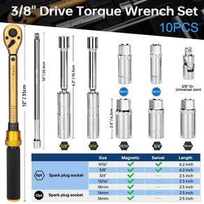 Eleve sua coleção de ferramentas com o conjunto de soquetes de vela de ignição magnética YIYEIE de 10 peças, projetado para precisão e eficiência. Nosso conjunto abrangente é feito sob medida para entusiastas e profissionais automotivos, fornecendo tudo o que é necessário para manutenção e substituição sem esforço da vela de ignição. Este conjunto de chaves de torque inclui uma chave de torque de 3/20.3 cm, soquetes magnéticos abrangentes nos tamanhos 14 mm, 16 mm, 18 mm, 9/40.6 cm, 5/20.3 cm, 3/10.2 cm e 13/40.6 cm, uma junta universal e uma barra de extensão de 25.4 cm, tornando este conjunto perfeito para uma ampla variedade de veículos e engates ines. Cada soquete possui um anel magnético que garante uma fixação firme nas velas de ignição, facilitando a remoção e instalação suaves. O design exclusivo de 6 e 12 pontos não apenas evita o arredondamento das velas de ignição, mas também oferece maior poder de aderência. Alcance a aplicação precisa de torque com uma configuração de faixa dupla de 13,5 a 61 Nm (13,5 a 61 Nm) e microajustes de incrementos de 0,1 m.lb. A chave de torque emite um som claro de "clique" para indicar quando o torque definido foi atingido, evitando qualquer dano por excesso de torque. Construído a partir de aço cromo-vanádio (Cr-V) de alta resistência e alumínio de grau aeroespacial, nosso conjunto de soquetes de vela de ignição garante durabilidade e resistência à ferrugem. Se você estiver lidando com manutenção de rotina ou reparos mecânicos complexos, o conjunto de soquetes de vela de ignição magnética YIYEIE com chave de torque é o seu companheiro ideal na garagem. Este conjunto não apenas aprimora seu kit de ferramentas, mas garante que cada troca de vela de ignição seja feita com precisão e facilidade. Armazenada em uma capa protetora, é perfeita para tarefas em movimento e mantém suas ferramentas organizadas e prontas para a ação. - Kit de ferramentas profissionais de 10 peças: Inclui uma chave de torque de acionamento de 3/20.3 cm, soquete magnético de vela de ignição de 12 pontos 14 mm, 16 mm, soquete de vela de ignição magnética extra longa de 6 pontos de 18 mm, 13/16 polegadas, junta universal e 25 cm de comprimento barra de extensão. Ideal para substituição de velas de ignição automotivas. - Conjunto completo de soquete de vela de ignição: o anel magnético retém e protege a vela de ignição para facilitar a remoção e instalação. Design de 6 e 12 pontos para maior aderência e evita arredondamento. Rotação de 360 graus para máxima flexibilidade, tornando espaços apertados facilmente acessíveis. Ideal para remover as velas de ignição profundas e difíceis de alcançar nos motores. - ± 3% de alta precisão: Faixa de torque duplo de 13,6 a 61 nm, com microajuste de 13,6 a 61 nm. Pré-calibrado para ± 3%, e cada chave tem um certificado de calibração rastreável. Basta ouvir o som de "clique" quando você atingir o valor de torque predefinido. Isso sinaliza que você pare de aplicar força para evitar danos por excesso de torque em seus itens. - 72 dentes, dupla direção: vem com uma cabeça de catraca reversível de 72 dentes, a chave de torque permite direções duplas com facilidade. O botão de liberação rápida garante um ajuste seguro e troca rápida do soquete da vela de ignição magnética. A alça antiderrapante oferece conforto e segurança durante o uso. Marcações de tamanho na cabeça do soquete da vela de ignição para facilitar a identificação. - Alta qualidade e durável: excede os padrões ASME e DIN-ISO. Feito de aço Cr-V de alta resistência e alumínio aeroespacial, garantindo durabilidade, resistência à ferrugem e resistência à corrosão. Vem com um estojo de armazenamento protetor. Perfeito para a remoção de velas de ignição para carros, motos e outros motores a gasolina.