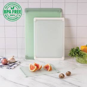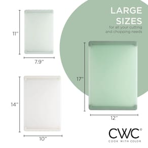 COZINHE COM CORES — Nós realmente nos preocupamos em adicionar o estilo e a aparência certos à sua cozinha. Com nossos produtos, você vai adorar sua cozinha e criar o paraíso com que sempre sonhou. Nosso conjunto de 3 tábuas de corte de plástico são excelentes itens essenciais para a cozinha. Com este conjunto de 3, há uma tábua de cortar para tudo. Os tamanhos pequeno, médio e grande são ótimos para carnes, peixes, vegetais, frutas e queijos. Segurança e saúde são uma grande preocupação para nós. Cada tábua de corte de plástico rígido sem BPA para cozinhas apresenta bordas de TPR para garantir uma tábua antiderrapante. A superfície de plástico rígido manterá suas facas afiadas, o que é uma grande preocupação para cozinheiros experientes como você! Lindos estilos em cores modernas ajudarão você a criar o design de cozinha que você absolutamente ama. GARANTIA DE 100% DE SATISFAÇÃO DO CLIENTE: Na Cook with Color, nosso objetivo número um é a satisfação do cliente. Por favor, não hesite em nos contatar com quaisquer problemas, perguntas ou comentários para que possamos garantir que sua experiência de pedido do Cook with Color adicione a cor e o sabor certos! - Bordas antiderrapantes: diga adeus aos escorregões e deslizamentos ao cortar! Nossas tábuas de corte são equipadas com lados antiderrapantes, fornecendo uma superfície de corte estável e segura para todas as tarefas da cozinha - Três tamanhos convenientes: este conjunto inclui três tábuas de corte em vários tamanhos - incluindo uma placa XL. Quer você esteja fatiando frutas pequenas ou cortando vegetais grandes, temos a tábua ideal para cada trabalho. - ADICIONE COR E ESTILO - Entendemos as tendências da cozinha, e nossas tábuas de corte de plástico pequenas, médias e grandes em cores bonitas darão um toque incrível à sua cozinha. - LAVÁVEIS NA MÁQUINA DE LAVAR LOUÇA E FÁCEIS DE LIMPAR: Nossas tábuas de cozinha de plástico são livres de BPA e podem ser lavadas à mão para remover manchas após o uso ou lavadas na máquina de lavar louça. - GARANTIA DE 100% DE SATISFAÇÃO DO CLIENTE: Na Cook with Color, nosso objetivo número um é a satisfação do cliente. Por favor, não hesite em nos contatar com quaisquer problemas, perguntas ou comentários para que possamos garantir que sua experiência de pedido do Cook with Color adicione a cor e o sabor certos!