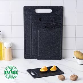 COZINHE COM CORES — Nós realmente nos preocupamos em dar à sua cozinha o estilo e a aparência certos. Com nossos produtos, você vai adorar sua cozinha e criar o oásis com que sempre sonhou. Nosso conjunto de 3 tábuas de corte de plástico é um ótimo acessório de cozinha. Com este conjunto de 3, há uma tábua de cortar para tudo. Os tamanhos pequeno, médio e grande são ideais para carnes, peixes, vegetais, frutas e queijos. Segurança e saúde são uma grande preocupação para nós. Cada tábua de corte de plástico rígido sem BPA para cozinha possui bordas de TPR para garantir uma tábua antiderrapante. A superfície de plástico rígido mantém suas facas afiadas, o que é uma grande preocupação para chefs experientes como você. Lindos estilos em cores modernas ajudam você a criar o design de cozinha que você absolutamente ama. Garantia de 100% de satisfação — Na Cook with Colour, nosso principal objetivo é a satisfação do cliente. Sinta-se à vontade para nos contatar com quaisquer problemas, perguntas ou comentários para que possamos garantir que seu pedido Cook with Color adicione a cor e o sabor certos - ADICIONE COR E ESTILO - Entendemos as tendências da cozinha, e nossas tábuas de corte de plástico pequenas, médias, grandes e XL em lindas cores darão um toque incrível à sua cozinha. - SEGURAS E ANTIDERRAPANTES — Nossas tábuas de cortar de qualidade alimentar sem BPA para carne, peixe, vegetais e muito mais possuem pés de borracha para que você não se preocupe ao cortar suas comidas favoritas. A superfície de plástico rígido manterá suas facas afiadas. - OPÇÕES DE TAMANHOS DIFERENTES - De fatiar carne a picar uvas, este conjunto de tábuas de corte de plástico vem com uma tábua de tamanho excelente para suas necessidades de cozinha. As maiores medidas: 17", grande: 14", médio: 12" e pequeno: 9,5". - ALÇA DE TRANSPORTE E ARMAZENAMENTO - Cada uma de nossas tábuas de corte de plástico rígido possui uma alça fácil de segurar. Essa alça permite que você carregue as tábuas pela cozinha e até mesmo as use para pendurar ao secar e armazenar. Recomenda-se lavar à mão. - GARANTIA DE 100% DE SATISFAÇÃO DO CLIENTE: Na Cook with Color, nosso objetivo número um é a satisfação do cliente. Por favor, não hesite em nos contatar com quaisquer problemas, perguntas ou comentários para que possamos garantir que sua experiência de pedido do Cook with Color adicione a cor e o sabor certos!