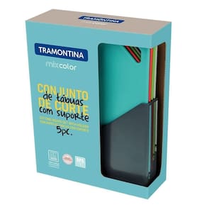 - Quem procura praticidade na hora de preparar suas receitas precisa do Conjunto de Tábuas de Corte Tramontina Mixcolor com Suporte 5 Peças.