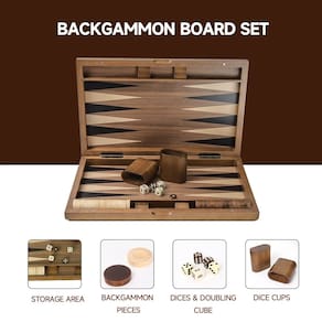 O conjunto de jogo de gamão dobrável de madeira inclui um tabuleiro de jogo de tabuleiro de gamão dobrável, um conjunto completo de 15 peças de jogo de gamão de madeira natural e 15 cores de café, dois copos grandes de dados de madeira, dois pares de dados, um cubo duplo e instruções de jogo para atender às suas necessidades de jogo. Existem três compartimentos para armazenar as peças e os dados do jogo de gamão, sem se preocupar em perder peças e dados. É perfeito para viagens, ambientes internos e externos, e diversão em família, noite de jogos, festa ou reunião de férias. - Material premium: nosso conjunto de jogos de tabuleiro de gamão dobrável de madeira apresenta o nível superior de artesanato embutido de folheado de madeira na superfície de jogo e superfície externa; lixar manualmente as superfícies e bordas da caixa do jogo, acabamento de pintura de grau de móveis; dobradiças de alongamento de bronze embutidas e ímãs fortes facilitam dobrar e travar a caixa do jogo - Tamanho: As dimensões abertas do tabuleiro de gamão premium são 52 x 42 x 2,8 cm, as dimensões fechadas são 42 x 26 x 5,5 cm e a dimensão da peça de gamão é de 2,8 cm - Conjunto completo: o conjunto de jogo de gamão de madeira inclui um tabuleiro de jogo de gamão dobrável, um conjunto completo de 15 peças de jogo de gamão branco leitoso e 15 cores de café, dois copos grandes de dados de madeira, dois pares de dados, um cubo duplo e instruções de jogo - Fácil de armazenar: você pode dobrar convenientemente o tabuleiro de jogo com todos os acessórios internos, existem três compartimentos internos para armazenar as peças do jogo de gamão e os dados, não precisa se preocupar em perder suas peças e dados do jogo, fácil de carregar e armazenar - Jogo divertido de gamão: o jogo de gamão pode estimular muito o interesse de todos, exercitando suas habilidades de pensamento e reação, adequado para adultos, iniciantes e jogadores avançados