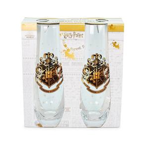 ao mundo mágico Hogwarts está trazendo a você uma experiência gastronômica requintada com este elegante conjunto de vidro. Esta criação mágica vai parecer que você está sendo transportado para o Grande Salão para uma rodada de bebidas. Requintadamente trabalhada, o brasão dourado de Hogwarts adorna esses copos altos de vidro canelados com detalhes encantadores. Elementos decorativos e brilhantes adicionam um toque atraente de capricho. COLEÇÃO DE BEBIDAS PARA POTTERHEADS Coloque estas taças de champanhe sem haste juntas para uma noite mágica para dois. Cada um se encaixa confortavelmente na palma da sua mão para desfrutar de todos os seus favoritos efervescentes. Este utensílio de bar de alta qualidade pode ser utilizado em qualquer ocasião que precise de um toque de encantamento e magia. Aproveite o melhor do Mundo Mágico nesta coleção oficialmente licenciada de Harry Potter. Instruções de cuidado: lavar à mão apenas, não pode ir à máquina de lavar louça, não é seguro
