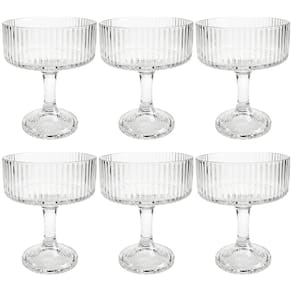 O Jogo de Taças de Sobremesa Latinos da Casambiente é produzido em vidro, com desenhos em relevo listrados para você servir deliciosas sobremesas com mais praticidade e requinte. Seu design minimalista, atemporal e elegante permite composições com outros itens em sua mesa ou cristaleira.