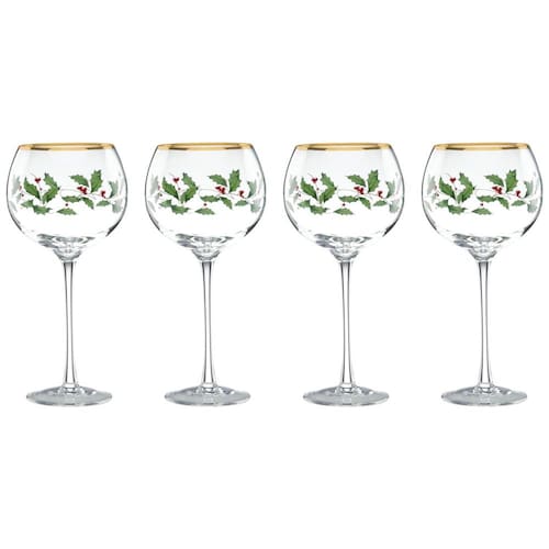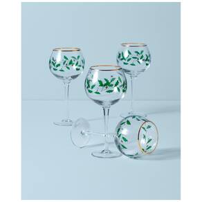Este conjunto de taças de vinho é ideal para qualquer ocasião, desde uma noite descontraída com a família e amigos até uma festa luxuosa e sofisticada. Com detalhes em dourado e um delicado motivo festivo de folhas de azevinho, as taças são uma adição elegante à sua coleção de utensílios domésticos.