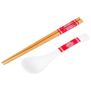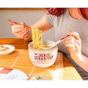 - Conjunto de tigelas de copo de cavalo: o conjunto de tigelas temáticas inclui uma tigela de cerâmica com o logotipo da Cup of Noodles. Escrito na frente da tigela está o slogan Cup of Noodles, "Muito mais do que uma sopa". Colher e pauzinhos combinando também apresentam o logotipo icônico.