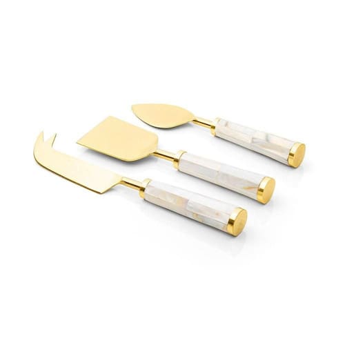 Conjunto De Talheres Copa E Cia Para Queijo 3 Peças Garbo Atenas Conjunto de Talheres Copa e Cia para Queijo 3 Peças Garbo Atenas - Características Gerais do Produto: - Composição: Composição por linha de talheres:; Rattan: em aço inoxidável gold com cabo de rattan natural.; Atenas: em aço inoxidável gold com cabo de madrepérola.; Monza: em aço inoxidável silver com cabo de resina.; Goldwood: em aço inoxidável gold com cabo de madeira.; Turim: em aço inoxidável gold com cabo de resina.; Ilhéus: em aço inoxidável com cabo de resina.; Bamboo Natural: em aço inoxidável disponível nas versões gold ou silver, com cabo de bambu natural.; Bamboo: em aço inoxidável silver com cabo de bambu natural escuro.; Rattan Natural: em aço inoxidável silver com cabo de rattan. - Detalhes: Design Exclusivo Copa&Cia.; As cores podem sofrer pequenas alterações de cor, variando de monitor para monitor.; Os objetos que ambientam as fotos não acompanham o produto.; As fotos produzidas são apenas como sugestão de uso com as demais peças da coleção.; Cabo de Bamboo - Cuidados: O Atrito entre as Peças pode Danificar o Produto; Lavar com Detergente Neutro e Esponja Macia.; Não Deixar de Molho.; Armazenar em local seco e arejado.; Não podem ser colocados em lava-louças.; Não utilizar solventes, abrasivos ou alvejantes. - Dimensões (cm): Dimensão da Embalagem: Altura: 3 cm, Largura: 14 cm, Comprimento : 17,5 cm Acompanha o produto: - 3 Peças de Talheres para Queijo Garantia: - 7 dias/30 dias contra defeito de fabricação