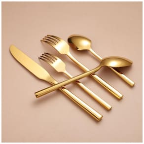 Apreciar uma refeição elegante e sofisticada nunca foi tão fácil com o Conjunto de Talheres Zerophilo. Feito de aço inoxidável de alta qualidade 180, este conjunto não deforma, quebra ou danifica com o calor. Seu design moderno em dourado espelhado, com cabo hexagonal e bordas suaves, além de ser resistente à corrosão, oferece conforto ao segurar. Ideal para diversas ocasiões, desde um jantar familiar até um evento especial, este conjunto completo para 4 pessoas inclui garfos, colheres, facas, garfos de salada e colheres de chá. Além disso, é seguro para a máquina de lavar louça, facilitando a limpeza e poupando tempo. Surpreenda alguém especial com este elegante presente de casamento, chá de casa nova ou simplesmente eleve a elegância das suas refeições diárias.