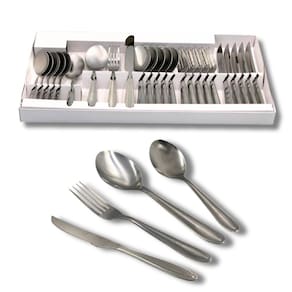 Feito de inox de alta qualidade, esse conjunto de talheres é leve, durável e fácil de limpar. O porta talheres incluído ajuda a manter tudo organizado e separado.