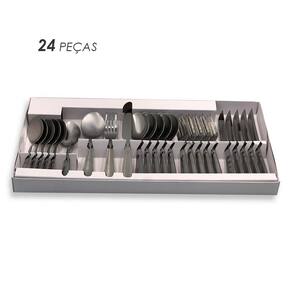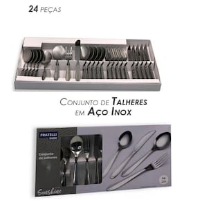6 Facas 6 Garfos 6 Colheres de Mesa 6 Colheres de Chá 1 Porta-talheres Marca: Não Informado
