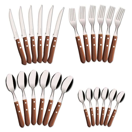 Conjunto De Talheres 24 Peças Martinazzo - Aço Inox/Madeira