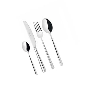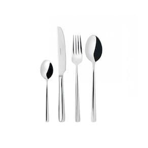 Os talheres em aço inox 18/10 da linha Metrópolis da Bugatti caracteriza-se por um formato clean e esguio, com linhas geométricas simples que conferem um estilo minimalista e contemporâneo à sua mise-en-place.
