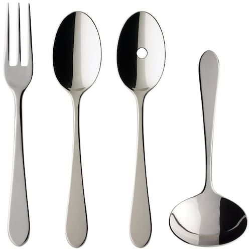 Este conjunto de 4 peças para servir é ideal para quem deseja adicionar um toque de elegância rústica à mesa. Ele inclui um garfo para carne, uma colher de servir furada, uma colher para vegetais e uma concha para molho, todos feitos de porcelana premium. As peças são práticas e podem ser lavadas na máquina de lavar louça e levadas ao micro-ondas.