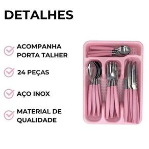 Conjunto de talheres rosa 25 peças com organizador Você já percebeu como é frustrante não ter um conjunto de talheres que combine beleza e funcionalidade na sua cozinha Utensílios desgastados ou sem estilo podem tornar suas refeições menos agradáveis e até prejudicar a apresentação dos pratos. O conjunto de talheres palmas é a solução ideal para quem busca praticidade e charme com um design moderno e cabos na cor rosa, ele traz elegância ao seu dia a dia, seja em refeições comuns ou em ocasiões especiais. Produzido com lâminas de aço inoxidável de alta qualidade, oferece resistência e durabilidade, enquanto o porta talheres com divisórias mantém tudo organizado e acessível. Benefícios: - estilo e elegância para suas refeições - resistência à corrosão e longa durabilidade - organização facilitada com o porta talheres - conforto ao toque com cabos leves e suaves Especificações técnicas: - dimensões: faca de mesa: 22 cm, garfo de mesa: 20 cm, colher de mesa: 20 cm, colher de sobremesa: 16 cm, porta talher: 29 cm x 20,5 cm x 4 cm - peso do conjunto aprox.: 590g - cor: rosa Conteúdo da embalagem: - 06 facas de mesa - 06 garfos de mesa - 06 colheres de mesa - 06 colheres de sobremesa - 01 porta talher para gaveta Não perca a chance de transformar suas refeições em momentos especiais adquira já o conjunto de talheres palmas e traga mais charme e organização para sua cozinha Informações importantes sobre a compra - com de fábrica Dúvidas frequentes: 2 - em quanto tempo meu pedido será enviado 3 - é confiável fazer esta compra Resposta: desde a criação da nossa empresa, já temos milhares de clientes satisfeitos em outras lojas online. Somos uma loja oficial neste marketplace. Além de todas as garantias da plataforma, oferecemos de fábrica. 4 - os produtos possuem Resposta: sim, oferecemos de 30 dias em todos os nossos produtos. Caso ocorra qualquer problema, iremos resolver da melhor forma. 5 - essa compra é segura Resposta: sim, garantimos total segurança na sua compra e sigilo dos seus dados. 6 - e se eu não gostar do produto, terei meu dinheiro de volta Resposta: de acordo com o cdc código de defesa do consumidor , todo cliente de compras online tem até 7 dias para devolver o produto em caso de arrependimento, sem custo na devolução. Você será reembolsado em 100% do valor da compra. Se você tiver alguma dúvida, envie uma mensagem e responderemos o mais rápido possível. Marca: Não Informado Ean: 7893555490081