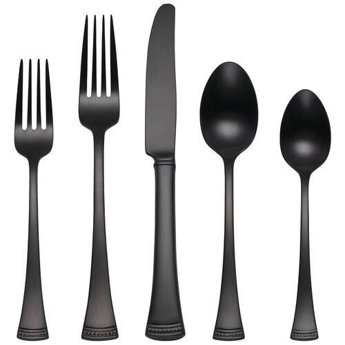 Apresentamos o conjunto de talheres Portola em sua elegante versão clássica na cor preta, com acabamento acetinado. Este conjunto completo, projetado para servir quatro pessoas, conta com alças alargadas e um delicado canal com contas na base, garantindo um toque sofisticado à sua mesa. Fabricado pela Lenox, uma marca com mais de 130 anos de história e tradição em artesanato, cada peça reflete um compromisso centenário com qualidade, arte e beleza. O conjunto é feito de aço inoxidável 1810, que assegura durabilidade e resistência.