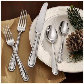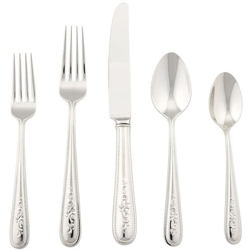 Este conjunto de 5 peças da coleção Opal Innocence da Lenox é a definição de elegância e sofisticação. As bordas com miçangas e o delicado motivo de rolagem em cada alça conferem um toque de charme à sua mesa.