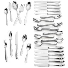 Este conjunto de talheres casual e elegante Butterfly Meadow da Lenox, com 65 peças, é feito de aço inoxidável 1810 durável e apresenta o encantador motivo de borboletas e flores, característico da coleção.