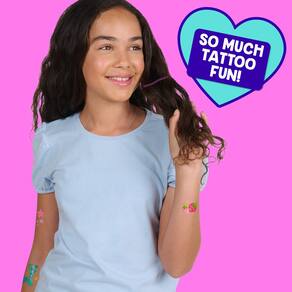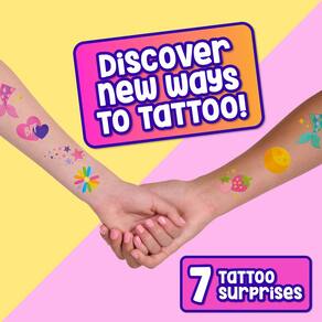 Style Squad — 7 dias de tatuagens — FAÇA DE CADA DIA UM DIA DE AUTOCUIDADO! Revele uma nova surpresa de tatuagem a cada dia! Inclui 7 surpresas para se divertir com tatuagens durante toda a semana! - DIVERSÃO DE TATUAGEM! Melhore seu jogo de arte corporal com tatuagens perfumadas, tatuagens em flash, tatuagens com gemas e até tatuagens BFF! - NOVAS FORMAS DE TATUAR! Seja criativo com seu aplicativo de tatuagem usando a caneta de tatuagem, o estêncil, o carimbo e o glitter corporal incluídos! - Diversão para maiores de 8 anos — INCLUI: 4 tatuagens perfumadas, 1 marcador de tatuagem com estêncil, 3 tatuagens de gemas pegajosas, 1 folha de tatuagem de cabelo, 4 tatuagens BFF, 3 tatuagens em papel alumínio, 2 tatuagens que brilham no escuro.