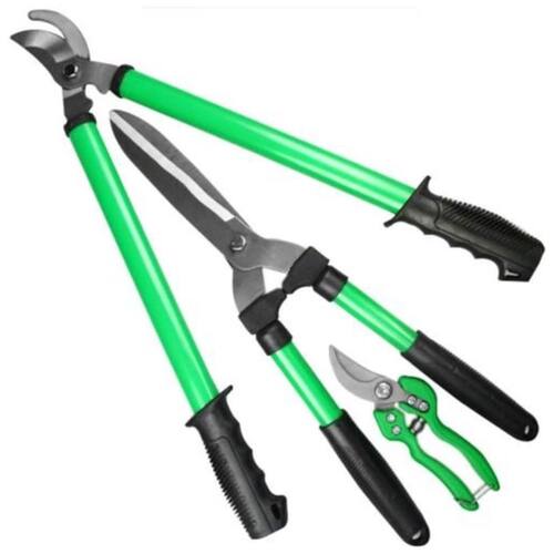 Vantagens e Benefícios:Eficiência: Permite cortes precisos em diferentes tipos de plantas e galhos, garantindo acabamento profissional.Versatilidade: Três tesouras de tamanhos diferentes atendem todas as necessidades de jardinagem.Durabilidade: Lâminas em aço de alta resistência e cabos ergonômicos garantem longa vida útil.Conforto: Cabos antiderrapantes e design ergonômico proporcionam segurança e reduzem fadiga.Praticidade: Produto pronto para uso, compacto e fácil de armazenar.