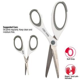 - Pacote combinado de duas tesouras cinza e branca combinando: tesoura de tecido de 8 ½ polegadas e tesoura de mini detalhes de 4 polegadas