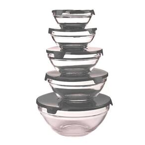 Kit 5 Potes de Vidro Conjunto de Tigela Bowl Para Mantimento