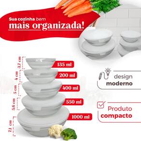 Livre de BPA: As tampas de plástico são livres de BPA, proporcionando segurança e qualidade no armazenamento dos alimentos. Versatilidade: O conjunto é ideal tanto para uso no micro-ondas quanto no freezer, oferecendo praticidade no dia a dia. Vidro de alta qualidade: Feitas de vidro resistente, as tigelas são fáceis de limpar, preservando a higiene e o sabor dos alimentos. Praticidade: Com opções de diferentes tamanhos, este conjunto é perfeito para armazenar, preparar e servir vários tipos de alimentos, tornando-se um item indispensável na sua cozinha.