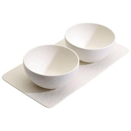 Este conjunto inclui duas tigelas de condimentos e uma bandeja de servir, perfeito para adicionar um toque de elegância ao seu serviço, ideal para ocasiões especiais ou para receber seus convidados com estilo.