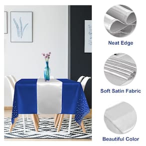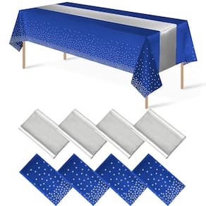 - O que você receberá: o pacote inclui 4 peças de toalha de mesa de plástico com pontos de confete azul e prata e 4 peças de caminho de mesa de cetim prateado, cor específica como mostrado na imagem, boa combinação para você usar no dia a dia ou ocasiões importantes, melhorando a atmosfera do seu evento.