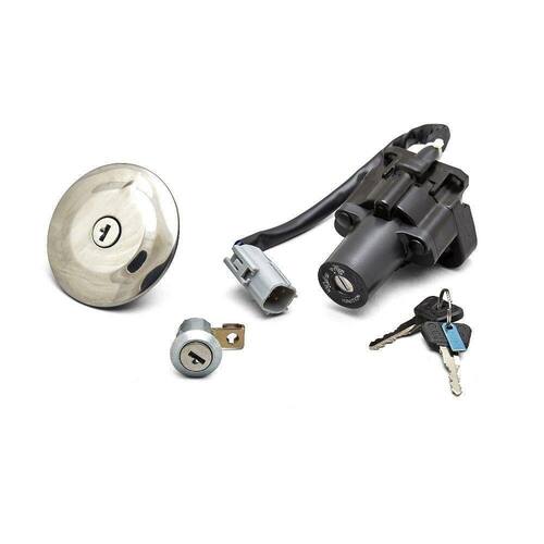 O conjunto de travas tem a função de acionar e/ou destravar, com uma única chave, vários componentes da motocicleta, como: ignição, guidão, tampa do tanque, trava de capacete e trava da tampa lateral.