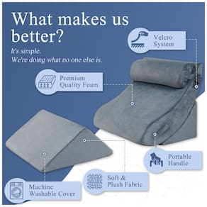 Além disso, o travesseiro possui um sistema de suporte multifuncional, perfeito para recuperação após cirurgia lesão e tornando mais fácil entrar e sair da cama. Os travesseiros ajustáveis podem construir diferentes formatos com base em suas necessidades, mantendo a parte superior do corpo elevada, alinhando a coluna corretamente e aliviando imediatamente as dores nas costas e no pescoço.