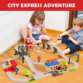 Conjunto de trem urbano para crianças, 55 peças, conjunto de trem elétrico simula sistema de transporte urbano, brinquedos educativos para crianças, presentes de aniversário para meninos e meninas de 3, 4, 5, 6, 7, 8 ou mais - Conjunto de trem de trilho urbano: o conjunto contém 28 trilhos, 3 trens ferroviários, 24 acessórios e 22 adesivos, tem rodovias, viadutos, cabines de pedágio, postos de gasolina, túneis, etc. Restaura vividamente o sistema de transporte da cidade. As faixas podem ser combinadas à vontade, deixe seu bebê se tornar um pequeno engenheiro, brinque totalmente à sua imaginação e criatividade, construa sua própria cidade! - Boa ideia para família e festas: se você está planejando um evento familiar divertido ou quer ter mais comunicação e interação com seus filhos, o conjunto de trem urbano deve ser a escolha certa para você! Você pode montar com seus filhos, passar um tempo aconchegante entre pais e filhos e melhorar o relacionamento com seu bebê em um ambiente relaxante e agradável! Depois de montado, pressione o botão Iniciar, vá em uma aventura para a pequena cidade que você construiu! Esta certamente será uma atividade familiar realmente perfeita! - Mundos pequenos, grande diversão: acelere a rodovia, atravesse os pequenos túneis, encha o posto de gasolina e monte pedágios nas cabines de pedágio... Esta pequena cidade é cheia de diversão e é muito jogável, por isso é perfeita para brincar com bons amigos! Na interação com colegas, as habilidades sociais da criança serão melhoradas subconscientemente. Ao mesmo tempo, também permite que as crianças aprendam o bom senso de uma maneira divertida, abrindo um tempo agradável sem tela! - Segurança e portátil: a pista é requintadamente trabalhada, as juntas da pista são bem ajustadas e feitas de materiais seguros e não tóxicos, além de serem sólidas e firmes, as ranhuras da pista são muito suaves, para que você não precise se preocupar com o trem ficar preso. E o carro de pista é leve, todas as peças são embaladas em uma pequena caixa e fáceis de transportar, perfeito para piquenique e viagens de acampamento, proporcionando horas de diversão para o seu bebê! - Presente ideal para crianças de 3 anos ou mais: o conjunto de trem urbano é um presente ideal para crianças em qualquer ocasião, como Páscoa, Natal, carnaval, festa de aniversário, viagens de acampamento, Halloween, etc. Ótimos presentes para meninos e meninas de 3, 4, 5, 6, 7, 8 ou mais!