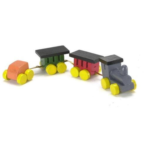 - Adorável conjunto de trem de madeira pintada para seus filhos em miniatura. O conjunto inclui motor, dois carros de passageiros e um carro fechado. O conjunto pode ser vinculado em qualquer configuração que você desejar.