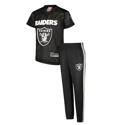 - Conjunto de uniforme juvenil oficialmente licenciado pela NFL com as cores e logos autênticos do time Las Vegas Raiders.
