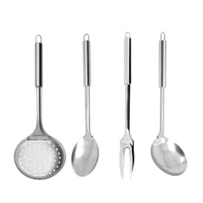 Conjunto de Utensílios para Servir em Aço Inox Prime – 4 Peças com Cabo Arredondado e Argola – 32cm