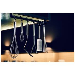 Material: acabamento em aço inoxidável 18, 10 parcialmente mate em aço inoxidável Cromargan. Sem ferrugem, lava louças, dimensionalmente estável, sanitário, resistente a ácidos e indestrutível. Silicone de alta qualidade. As peças funcionais são firmemente cimentadas na alça. Inclui um ilhó prático para zenamento em um rack com ganchos. Design: Atelier WMF. Coleção: Profi Plus