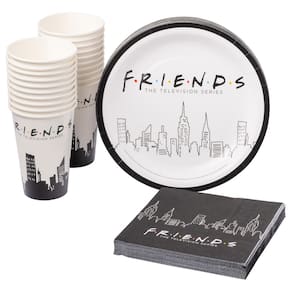 - Pratos de lanche: os pratos de festa de tamanho perfeito para todas as suas necessidades de lanches. Cada placa apresenta uma foto do horizonte de Nova York com o texto Friends escrito na frente. Também facilita a limpeza com copos e guardanapos descartáveis.