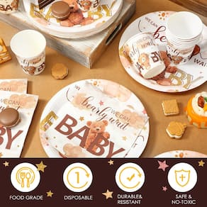 Características: Leve e portátil: Os conjuntos de pratos e guardanapos para chá de bebê são leves e portáteis, você pode levá-los facilmente para a estrada e eles não adicionarão muito peso ao seu pacote. Destinatário do presente: Estes conjuntos de pratos, copos e guardanapos de chá de bebê podem ser aplicados como presentes atenciosos para seus entes queridos que vão dar uma festa, e eles ficarão felizes e surpresos ao receber esses presentes. Especificações: Material principal: papel Cor: como mostrado nas imagens. Tamanho: Bojos: cerca de 255 g Placas de papel: cerca de 23 cm Guardanapos: cerca de 16,5 cm quando dobrados A embalagem inclui: 50 pratos de papel. 50 xícaras. 100 guardanapos. Observações: Medição manual, considere pequenos erros no tamanho. A cor pode existir uma pequena diferença devido a diferentes telas. - Tema do chá de bebê: os pratos de chá de bebê são projetados com padrões de urso marrom, fofos e charmosos para você usar em festas de chá de bebê, e seus convidados ficarão satisfeitos - Seguro e confiável: este conjunto de utensílios de mesa para festa é feito principalmente de papel de qualidade, insípido e confiável, impresso com padrões claros, não desbota ou rasga facilmente, e você pode aplicá-los com confiança - Design de urso marrom: estes pratos de chá de bebê são projetados com estilo vibrante de urso marrom, vívido e delicado, o que pode tornar sua festa cheia de atmosfera festiva e quente, deixando seus convidados impressões profundas - Fácil de combinar: decorações de festa com cor clássica e design simples, os utensílios de mesa rústicos podem combinar bem com suas decorações de festa temáticas, economizando tempo e energia na escolha e combinação - ampla variedade de aplicações: estes pratos de jantar de festa descartáveis são complementos ideais para chás de bebê, festas de aniversário da maioria das idades, piqueniques, churrascos, festas de pesca de verão, festas ao ar livre, férias, clubes e assim por diante