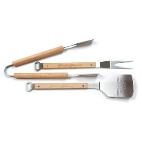 - O conjunto inclui: Espátula grande e garfo com abridor de garrafa e pinças de ponta larga.