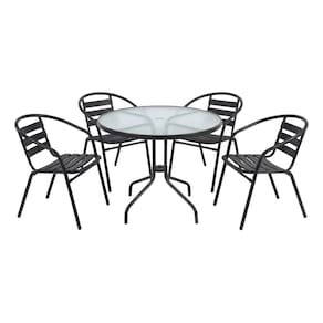 Conjunto de Varanda e Jardim Mesa 80cm e 4 Cadeiras - Rio Conjunto de mesa e cadeiras ideal para compor areas externas como varanda, jardim, sacada ou area gourmet. O modelo Rio oferece design moderno e funcional, proporcionando conforto e praticidade para momentos de lazer e refeicoes ao ar livre. As cadeiras sao produzidas em aco resistente, garantindo durabilidade e estabilidade no uso diario. A mesa possui estrutura em aco com tampo de vidro, trazendo elegancia ao ambiente e facilidade na limpeza. O tampo conta com furo central para instalacao de guarda-sol, permitindo maior conforto em areas externas com exposicao ao sol. Caracteristicas: Mesa com estrutura em aco e tampo de vidro Cadeiras com estrutura em aco resistente Furo central para guarda-sol Ideal para varanda, jardim, sacada ou area gourmet Dimensoes da mesa: 80 cm de diametro Conteudo: 1 mesa e 4 cadeiras Marca: Não Informado