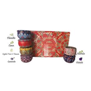 Descrição: Pacote de 6 velas enlatadas, de cera de soja, com flores secas. Velas aromáticas, cada lata traz um aroma diferente (veja os aromas na foto principal) 3. Material de cera pontiaguda: 100% de cera soja4. Duração: 25 ~ 30 horas5. Ideal como presente: ideal para aniversários, Natal, aniversários, Dia das Mães, Dia dos Pais ou outros festivais para atender às necessidades de pessoas de todas as idades. Material: cera Socha Tamanho: 75* 75* 55 mm Peso bruto: 160 g Peso da cera: 120 g TEMPO DE QUEIMA: cerca de 25 ~ 30 horas\ NEspecificações: 100% novo\ NÓleo l de alta qualidade acalma corpo e corpo\ NLiberta seus nervos\ NMassagem l\ NEcológico\ NCadinho de grafite\ Mini forno de tocha de fusão de metal dourado: conjunto de velas (6 unidades)