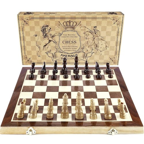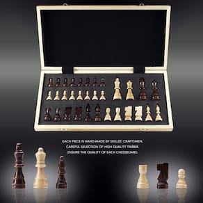 Marca: Amerous Um companheiro perfeito para todos os amantes do xadrez O tabuleiro de xadrez foi projetado para colisão, para jogar ao ar livre em dias de vento ou para jogar enquanto viaja. O processamento suave foi utilizado na parte inferior de cada jogador de xadrez, diminuindo o som enquanto se move. Os xadrez são dimensionados logicamente para corresponder ao tamanho do tabuleiro de xadrez e cada xadrez tem seu próprio espaço especial dentro do tabuleiro para armazenamento. Isso ajuda a evitar que os jogadores de xadrez tremam quando você carrega o jogo, você não perde nenhuma peça e é fácil de carregar. É o melhor presente para crianças porque é um jogo educativo e aguça a inteligência. Um toque feito à mão que muitos entusiastas do xadrez apreciarão. Este será o seu conjunto de xadrez de madeira favorito. - Xadrez magnético: sensação artesanal que muitos entusiastas do xadrez apreciarão. Design magnético exclusivo dos jogadores de xadrez para colisão, jogarem ao ar livre em dias de vento ou jogarem enquanto viajam. Certifique-se de não perder enquanto joga - Tabuleiro de xadrez dobrável: o tabuleiro de xadrez dobrável é fácil de carregar, pode ser jogado em ambientes fechados ou ao ar livre. É um ótimo jogo de xadrez para presente e/ou viagem — Armazenamento de xadrez: cada xadrez tem seu próprio espaço especial dentro do tabuleiro para armazenamento. Sem barulho, sem peças perdidas, mantenha seu xadrez limpo e organizado. Proteja as peças de xadrez de serem danificadas por colisões - Antiarranhões: o processamento suave foi utilizado na parte inferior de cada jogador de xadrez, diminua o som durante o movimento, garanta que a superfície do tabuleiro não seja arranhada pelo xadrez, proteja o tabuleiro o tempo todo - Qualidade 100% premium: acabamento requintado de qualidade premium com padrões claros no tabuleiro de xadrez. A superfície lisa do xadrez nunca machucará seus dedos, durável para uso por muito tempo. Oferecemos uma garantia de qualidade de 24 meses e devolução incondicional do dinheiro se você não gostar